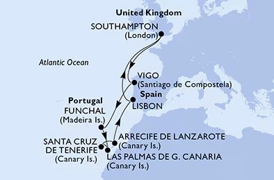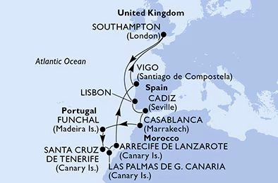 25.10.2024, 14 Nächte (von Großbritannien bis auf die Kanaren, Marokko und zurück)